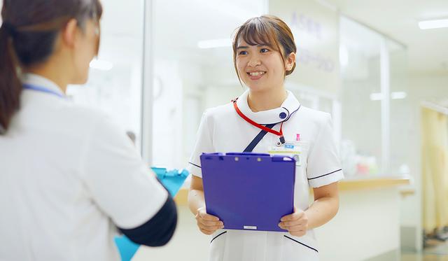 チームの架け橋としての看護師であり続けたい。 看護師にとって絶対に欠かせないことの1つが関連職種との情報共有です。患者さんの情報を医師に的確に伝え、ご本人とご家族の意思を確認し、関連職種と情報を交換しながら支援方針を立てていきます。患者さんに最も近い立場の看護師は「チーム医療」の中心と言われますが、私は「架け橋」という捉え方をしています。ADL(生活動作)の状況や家族構成を踏まえ、自宅復帰が困難だと判断した場合は、施設への入所を勧めてみることも「架け橋」の1つ。もちろん患者さんの意思を尊重するために、最大限の支援をします。「チーム医療」の大切さに気づかされたのは在学中でした。どのような状況でどのような職種と関わるのか、多学科構成の中での学びを意識しながら、病院実習に取り組んだことを覚えています。
