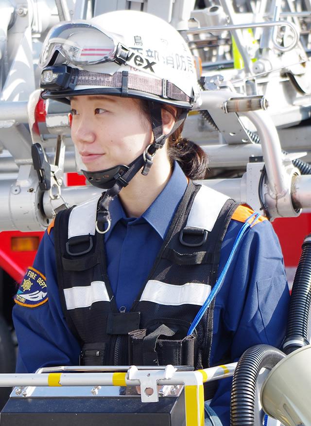 救急救命学科を卒業し、鳥取県西部広域行政管理組合の女性消防官第1号として活躍する福田智子さん。これからの目標と、女性だからできる強みについてお話を伺いました。
