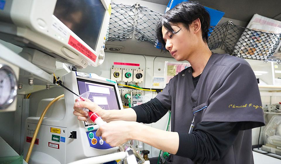 眼科の手術室およびNICU(新生児特定集中治療室)の臨床工学技士を務めています。眼科では白内障手術や硝子体手術などの際、医療機器の安全点検、セッティング、手術のサポートといった業務にあたり、NICUでも人工呼吸器などの機器を扱います。新生児の場合、成人と違ってほんの少しの変化で体調が悪化することがあります。日々命の重みを感じながら、1人でも多くの赤ちゃんを助けたいという想いで機器の操作・設定を行っています。NICUは学生時代から勤めたいと思っていた部署です。1つの希望がかないましたので、今後は臨床工学技士の認定資格の取得を目指してキャリアを積んできたいと考えています。