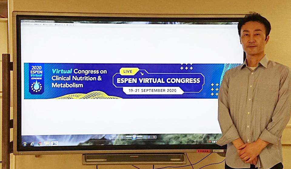 2020年は「認知症と嚥下障害の関係」というテーマで、欧州臨床栄養代謝学会で発表しました(写真)。本来はフランス開催の予定で、英訳の抄録も作成していたのですが、コロナ禍でオンラインでの実施となりました。2021年は国内で「抗精神病薬と嚥下障害の関係」について学会発表を行いました。