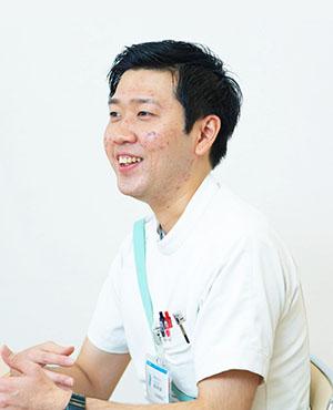 当院へは開院時に入職しました。入職から回復期リハビリテーション病棟の方に在院していましたが、この2年で医療療養病棟が立ち上がったので、今はそこの責任者をつとめています。主に入院患者さんのリハビリを担当していまして、外来リハビリの方も兼務しています。その他、事務的なこととして、責任者ということもあり、医師や病棟との連携を取るための仲介、院内で推進している様々な係のとりまとめをしています。また、新人スタッフの採用も担当しています。