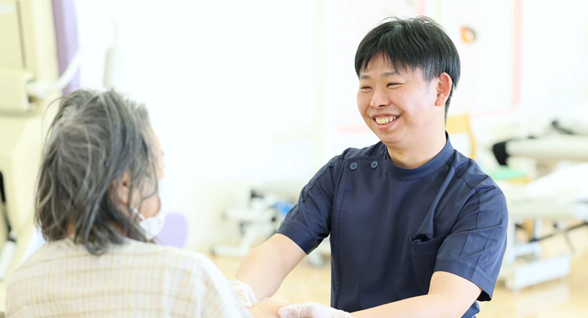 手術後のリハビリには痛みが伴うため、患者さんには大きな負担となります。しかし、筋肉を動かさないと固まってしまうため、こちらも心を鬼にして施術しなくてはいけません。そうしてリハビリを続けた結果、「やっててよかった」と笑顔で話してもらえる時が、やりがいを感じる瞬間です。中には、退院した後に声を掛けにきてくれたり、差し入れをしてくださる方もいらっしゃり、この仕事をしていてよかったなと思えます。医療職はやはり、コミュニケーションが大事な職業です。患者さんとのやりとりでも、チーム医療を実践するにしても、コミュニケーションが欠かせません。いま学生の方には、しっかり挨拶をしたり、目を見て話すなど基本的なことでいいので、人とつながる力を学生のうちに身につけられるよう努力してほしいなと思います。