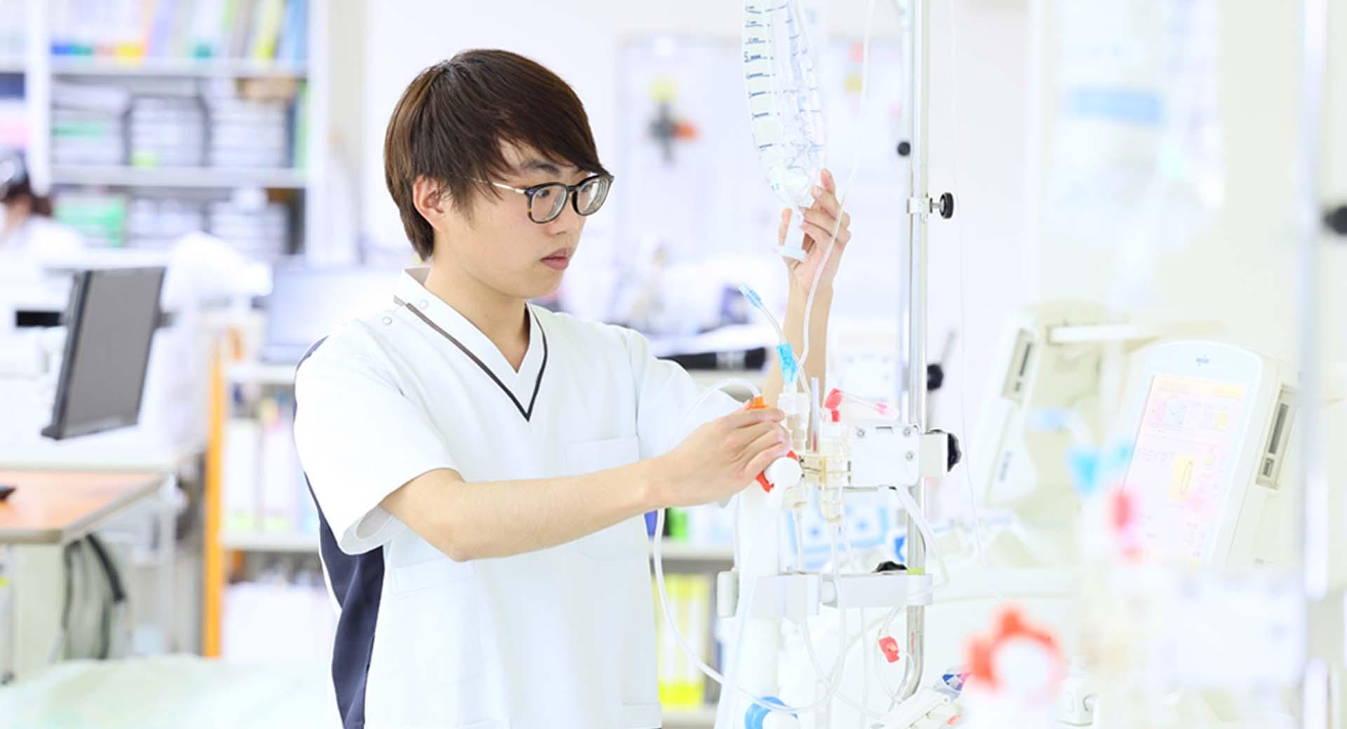 臨床工学技師として、透析業務や、透析に使用する機械の定期点検等の業務に携わっています。もともと医療業界に興味があり、高校では理系を選択していたので、工学分野と医療分野が合わさったこの仕事を選びました。