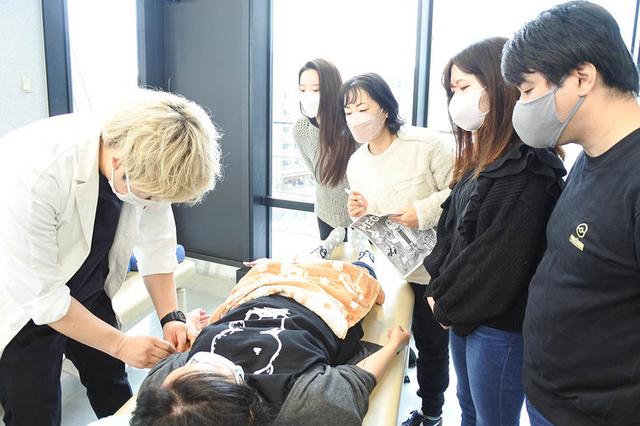医療という枠を越え、スポーツや美容分野など活躍の幅が広がり、将来は自分の施術所を開業できる鍼灸師(はり師・きゅう師)。いま、新しい活躍の場として、音楽シーンで大活躍している鍼灸師が“メガパン先生”こと野田先生です。フェスや全国ツアーを回る著名アーティストたちからも信頼が厚く、『アーティスト専門鍼灸師』として活躍しているメガパン先生。講義ではフェスやLIVE会場でどんな仕事をしているのか、一日の流れと、どのような点に気をつけながらアーティストに向き合っているのかを詳しく説明いただきました。 授業の中では、施術の様子も披露。実際に施術を受けた学生は、身体の変化に驚いていました。また「仕事のやりがい」「独立開業するための卒業後のスキルアップ」など学生からの質問があり、丁寧に答えていただきました。 「正直、体力的にも大変なことが多いです。ただインディーズ時代から見ていたアーティストさんが大きな会場でLIVEできるようになり、一世一代の舞台でベストコンディションにしてあげたくて “よし頑張ろ”って思うんです。」「アーティストさんが海外でLIVEをする際も、一緒についてきてほしいと言われたことがあります。『“アーティスト専門鍼灸師”という道を目指す人が増えてほしいからこそ、新たな事例として広まってほしい』とアーティストさん本人から言われた時、自分のやってきたことに確信が持てたし、このやりがいと楽しさは、何にも代えられないです。」 講義を通じて、学生はモチベーションがあがった様子でした。本学では、各分野を知り尽くした業界トップの専門家が直接指導し、教科書からだけでは学ぶことができない最新の動向をキャッチできる実践的な授業を行っています。