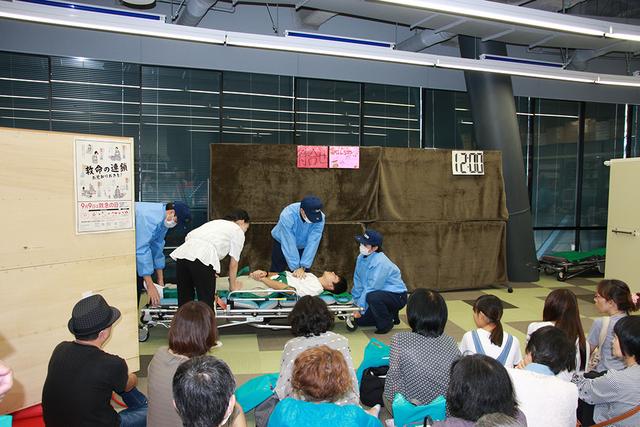 💡救急救命学科 それいけ!BLSマン!!~あなたに救える命がある~ 学生たちによる劇団救急救命の寸劇が行われ、救命処置の大切さを伝えてくれました。 劇のあとは学生たちによる救命処置の講習会もひらかれました。 ※BLS・・・心肺停止または呼吸停止に対する救命処置のこと。