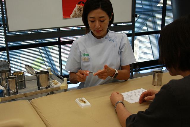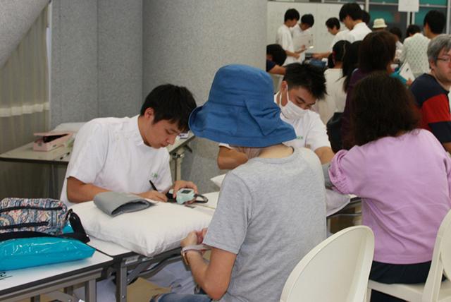 💡鍼灸学科 はり・きゅう治療を自分でやってみよう! 東洋医学を通して健康チェックをしたり、学生たちがお灸や鍼の使い方、身体の悩みに効くツボを伝授しました。