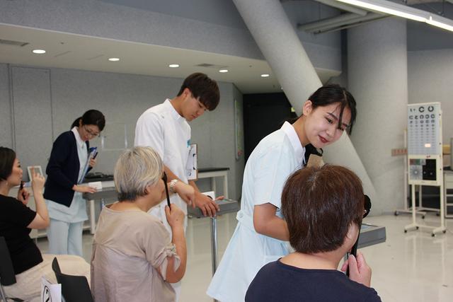 💡視能訓練学科 よく見えていますか? 最新の検査機器で視力・眼圧の測定を実施しました。目の仕組みについても視能訓練学科の学生たちが丁寧に説明をしました。