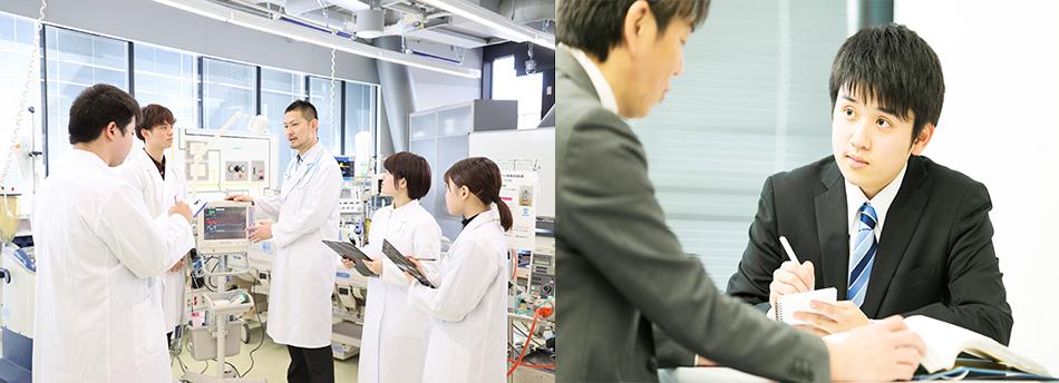 医療資格を取得する道は、1つではありません。 だからこそ、進路に迷う皆さんへ、名古屋医専と大学との違いを『教育』『就職』の2つのポイントで比べてみました。