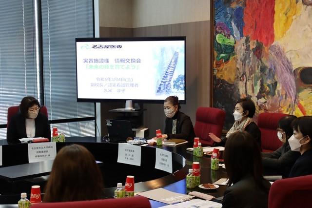 名古屋医専にて、2024年3月卒業予定の看護学部の学生を対象とした「就職説明会」を開催しました。 「就職説明会」では、大学病院・公立病院等の採用担当者が名古屋医専に来校。業務内容や病院の特色などについて担当者から直接話を聞くことができる、就職活動を控えた学生たちにとって貴重な機会です。 就職説明会に先立ち、2022年度からのカリキュラム改正に伴い、改めて情報交換会を開催。各病院の看護部長同士の交流の場も設けられました。
