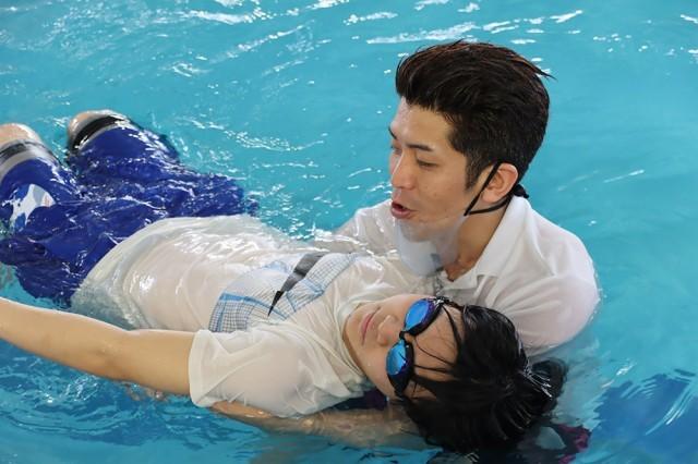 暖かくなってくると増加する水の事故。水の事故は、救急救命の現場のなかでもより一秒一刻を争う救助・処置が必要です。 名古屋医専で救急救命士を目指す学生たちにとっても、水難事故への知識・実践体験は欠かせません。 事故の際に冷静な判断を行うため、救急救命学科では授業の一環として着衣泳訓練を行っています。水難事故への啓発活動や着衣泳訓練を行う「一般社団法人パワーストローク」の協力のもと、当日は岡崎竜城スイミングクラブのプールを貸し切り、訓練を開始。インストラクター・牧 俊彦さんの指導のうえ、服を着たまま水に入り、要救助者として水に浮く練習や、助ける側として溺れている人にものを投げてつかまってもらうことなどを実際に体験。溺れている人を助ける際に適切な対処方法を学びました。 修了後には全員「着衣泳訓練士」の証明書を授与。学生にとっても実践的な訓練が自信につながりました。