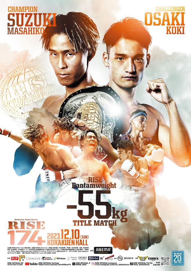 RISEバンタム級(-55kg)タイトルマッチ 3分5R無制限延長R 鈴木真彦(王者/フリー/第7代RISEバンタム級王者、WBCムエタイ日本統一バンタム級王者、HOOST CUP日本バンタム級王者) vs 大﨑孔稀(挑戦者/OISHI GYM/同級1位、BOMバンタム級王者、WMCスーパーフライ級王者、J-NETWORKスーパーフライ級王者) ※名古屋医専 鍼灸学科学生