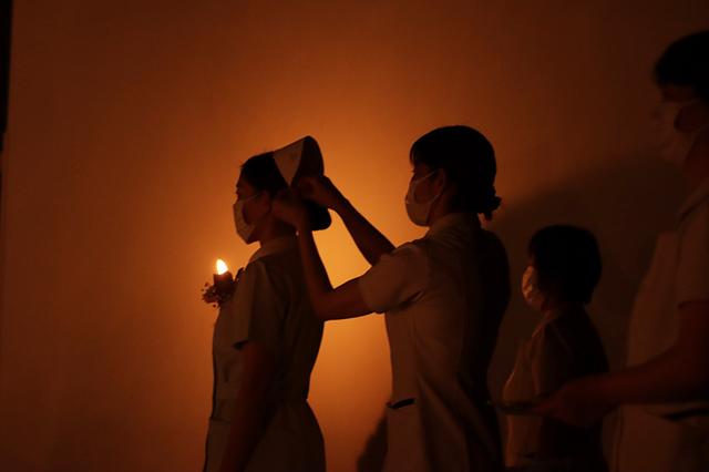 戴帽式とは、臨床実習が始まる前に、今一度「看護の道を歩むもの」として初心に立ち戻り、看護師という職業に対する志や人の命にかかわる責任感を再認識するために行うセレモニーです。 式では、本学の教官より「博愛」「責任」「清潔」を表すナースキャップを一人ひとり頭に載せていただきました。 学生たちは保護者、教官、来賓の方々に見守られる中、厳かにキャンドルへ点灯をし、全員でナイチンゲール誓詞を斉唱。ナイチンゲールの精神・看護の理念を再確認した学生たちは、決意を新たに臨床実習に挑みます。 看護師に興味がある方は、進路相談ができる学校説明会や、オンラインイベントに参加してみよう。
