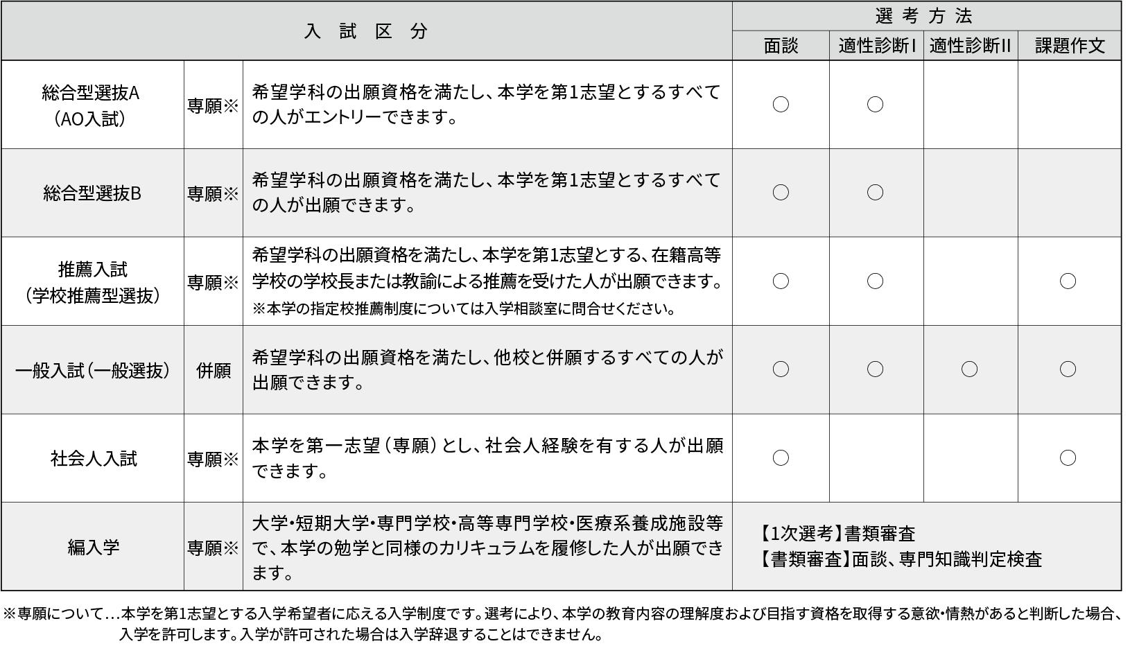 アドミッションポリシーにもとづき、一般入試の他にも、多様な入試を実施します。