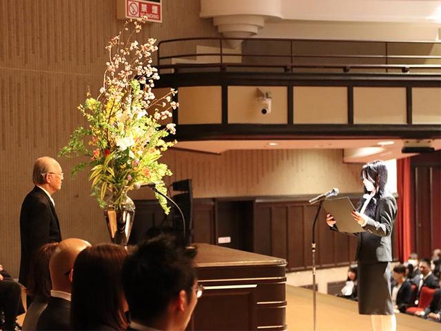 2025年4月2日(水)、名古屋医専2025年度入学式を名古屋市公会堂で執り行いました。 式典では、勝又義直校長からの訓示に続き、来賓の方からの祝辞、在校生代表による歓迎の辞、そして新入生代表による入学の詞が述べられました。