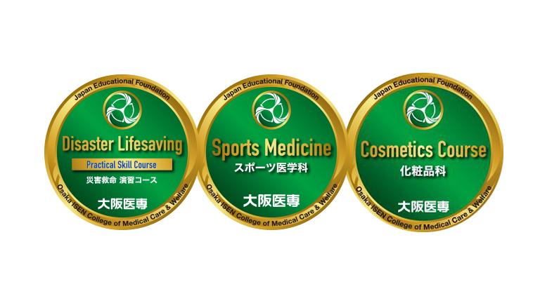 「メディカルトレーナー科」「スポーツ医学検定科」の2科を修了することで、トレーナーに必要なスキルを証明するデジタルバッジを取得できます。世界共通の技術標準規格に沿って発行されるデジタル証明・認証のため、身につけた知識・スキル・経験の証明として国内外にアピールできます。※詳細は入学相談室に問合せください。
