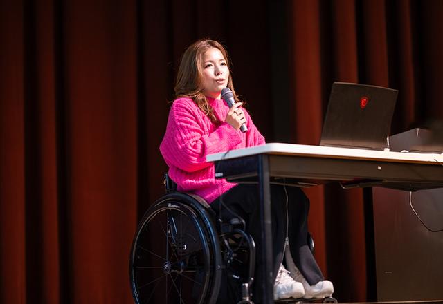 医療・リハビリ・福祉・スポーツ業界の各分野で活躍する医療人を育成する大阪医専にて、登録者12万人の車いすYouTuber渋谷真子さんをお招きし、特別講義を開催しました。 渋谷真子さんは事故で26歳の時に下半身不随となってから、「車いすの人も当たり前に社会に溶け込んでいたい」と恋愛や排せつ、旅行など様々な「車いす生活のリアル」を包み隠さず発信しています。今回、再生医療と車いす生活者の実情をテーマに、自身の経験をもとに、これから医療人を目指す学生たちに直接お話いただく貴重な機会となりました。 「楽しくできるかどうかは自分次第」 「情報をもっていることが強みになること」 「できるかできないではなく、やるかやらないか」 明るい表情でご自身の経験や現状や今後の夢について話される様子に、参加した学生は真剣な表情で渋谷さんの話に耳を傾けていました。