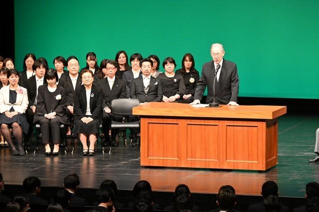 2024年4月8日(月)、大阪医専2024年度入学式をサンケイホールブリーゼで執り行いました。 式典では、北村 幸彦校長からの訓示に続き、大阪大学名誉教授で国立循環器病研究センター名誉総長の川島 康生氏からの祝辞、在校生代表による歓迎の辞、そして新入生代表による入学の詞が述べられました。