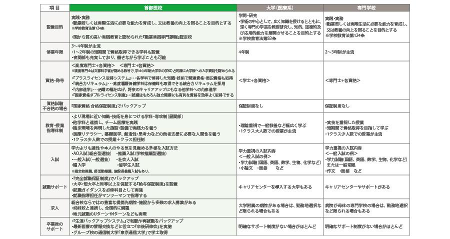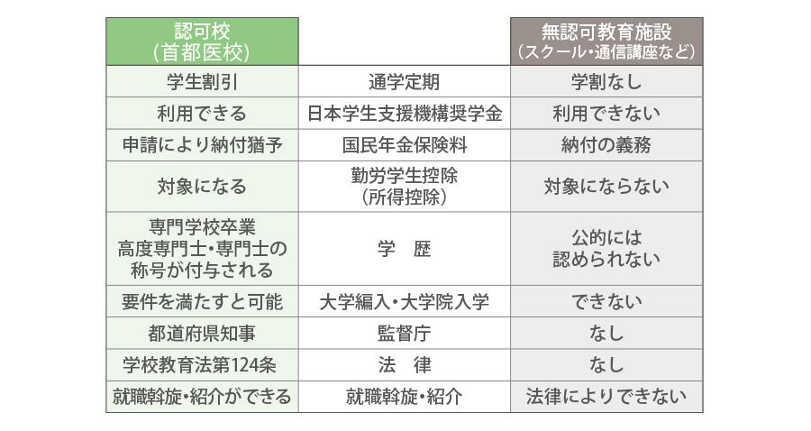 本学は、私立学校法第64条第4項に定められた学校法人であり、学校教育法第124条にもとづく専修学校です。この専修学校制度は、’76年に制定され、以来、実社会で役立つ知識・技術を修得する高等教育機関として、社会から多くの支持を得ています。また、保健師助産師看護師法・介護福祉士法・理学療法士および作業療法士法など所定分野の法にもとづく養成施設として、厚生労働大臣の指定を受けています。