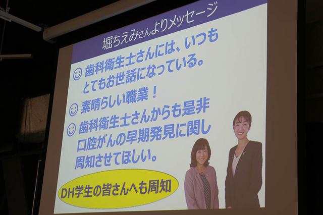 東京都歯科衛生士会会長の藤山美里先生によるスぺジャルゼミを行いました。藤山先生は益財団法人ライオン歯科衛生研究所で口腔保健の普及に努められ、また国際歯科保健医療の活動に関わる歯科衛生士として海外でも活躍されています。 講義では、コロナ禍での東京都歯科衛生士会の活動や女優堀ちえみさんと専門家による口腔がん検診を呼び掛ける座談会について、語っていただきました。