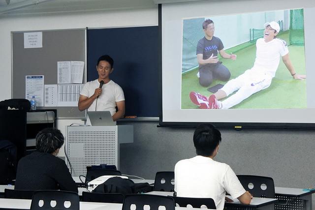 トップアスリートのトレーナーである木村匡宏さんをお招きし、講義を行いました。木村トレーナーはオリンピック選手やメジャーリーガーをはじめ、世界で活躍する選手から子どもまでサポートしています。新庄剛志監督のトライアウト挑戦の際もサポートされました。