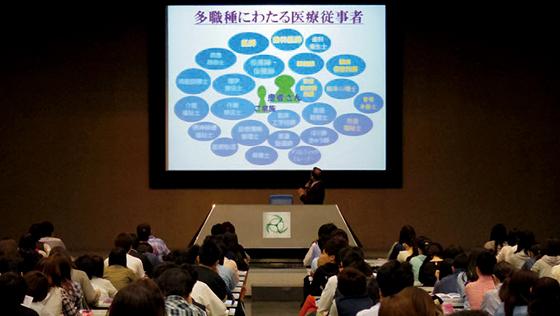 総仕上げとして、一堂に会した「チーム医療症例演習発表会」を実施。他職種への理解を深め、情報共有の大切さを学び、連携の在り方について考察した結果を発表します。