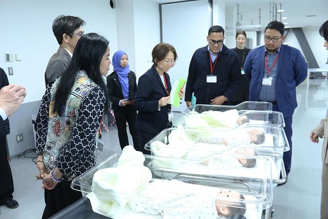 視察当日は、本学キャンパス(総合校舎コクーンタワー)にて、看護実習室などの施設を見学。「学校が関連産業と強固に連携し、業界のニーズに基づいた技能や人材を育成している現状は、非常に興味深い」と、日本のイノベーション創出への貢献に対するコメントもいただきました。