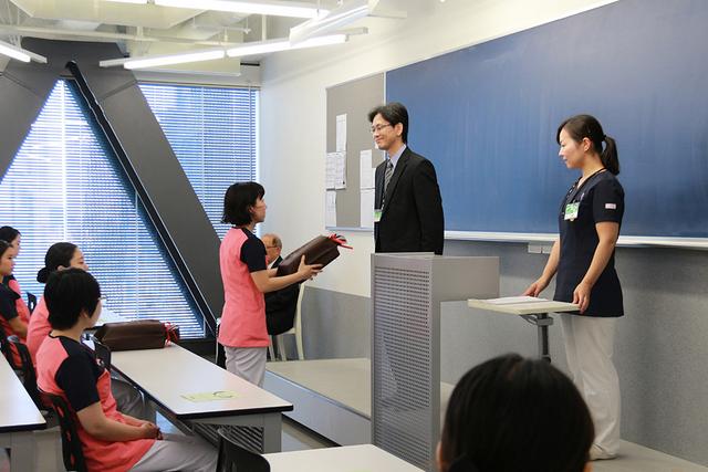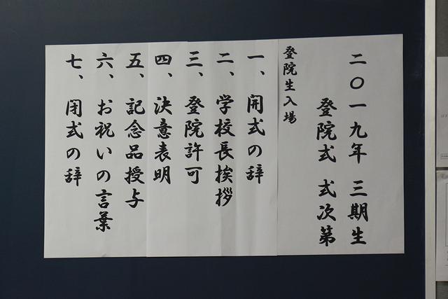 登院式では、宮下校長が自身の経験から患者と向き合う心についてお話をしました。 そのあと教官に見守られるなか、学生たちはひとり1人臨床実習に向け、決意表明をしました。