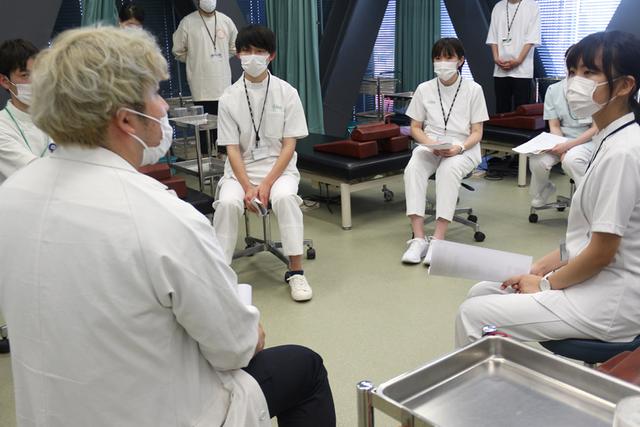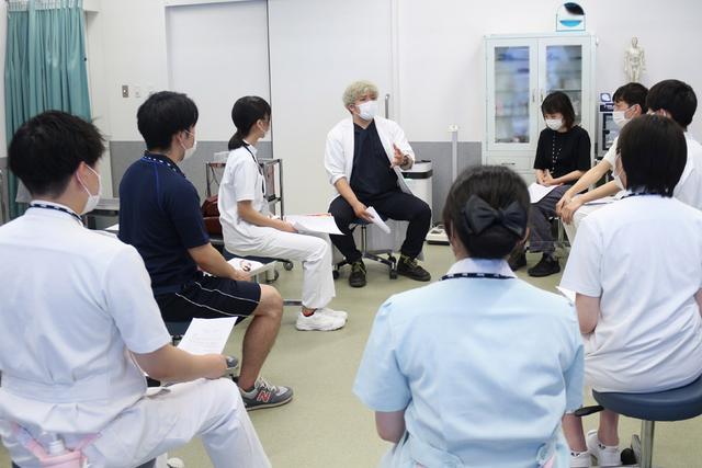 メガパン先生: 音楽関係の繋がりで、災害時に被災地へ物資を運ぶなどのボランティアをすることがあります。その経験から、音楽関係者と医療従事者がもっと繋がっていたらいいなと思っています。 高度看護保健学科 沼上先生: 災害時のボランティアは参加したことはないのですが、臨床の場で災害によって外傷を負った患者さんをみたことはあります。本当はそういったボランティアに積極的に参加をしたいと思っていました。 メガパン先生: 今、エンタメ業界は防災や減災に力を入れているけれど、ついこの前西日本で大雨があったときも圧倒的に医療ボランティアスタッフが足りなかった。今回のボランティアをきっかけにそういった被災地でも医療スタッフが増えたらいいなと思っています。被災地に医療知識を持った人が少しでも多くいてくれる、寄り添ってくれる環境があるだけで状況は変わります。また、被災地は重機が入らないので全て手作業です。作業を行っている人たちの肉体はボロボロで、その人たちのケアをする必要もあります。避難所は高齢者の方が多く、避難所で亡くなる方もいらっしゃるので常に看護師がいました。避難所には、リハビリに行けないという人もいました。そういうときに人命救助とは別の、ボランティアとしての医療スタッフも必要とされているので、今後音楽イベントだけでなく、被災地へのボランティアも一緒にやっていけたらと思っています。 高度理学療法学科 東海: これまでのメガパン先生のお話を聞いて、理学療法士でも音楽に関わることができるのだなと。なぜ鍼灸師として音楽に関わろうと思ったのですか?