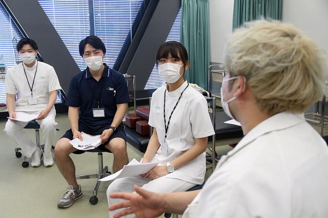 高度看護学科 神庭: 私は看護師を目指しているので多くの人たちを支えたいという想いがあり、以前からボランティア活動には興味がありました。今回、音楽イベントにおいての医療スタッフのボランティアということで、初めて聞いた内容でどういった事をするのか興味があり、またそのボランティアを通して将来的に活躍の場を広げられるかもしれないと思い、参加をしました。 高度理学療法学科 酒井: 私はこういう医療ボランティアがあると聞いて、ボランティア活動を通してイベントへ貢献したいという想いで参加をしました。 メガパン先生: “音楽が好き”という気持ちも、“ボランティアをしたい”という気持ちも、どちらも大事だよね。 アスレティックトレーナー学科 島村: 僕は、以前よくライブに行っていたのですが、今のイベントは声を出さないで開催すると聞いて。どういう現状なのかを知りたいとも思いました。 メガパン先生: ライブ会場にいたお客さんはみんな声を出さないで楽しんでいましたね。実際にその光景を見て、どう思いましたか? アスレティックトレーナー学科 島村: 正直、物足りないという雰囲気はありました。 メガパン先生: お客さんはライブへ来ているにもかかわらず、コロナ禍で声を出して楽しむことができない。そういうお客さんが早く報われるようになってほしいよね。今回、皆さんに協力いただいたおかげで、アーティストや芸能事務所の方々も「安心安全のイベントを本腰でつくっているというのを感じた」と言っていました。皆さんが2日間、真剣に取り組んだことは音楽イベント業界にとって大きな1歩になったと思います。今後も自信を持って勉学に励んでほしい。