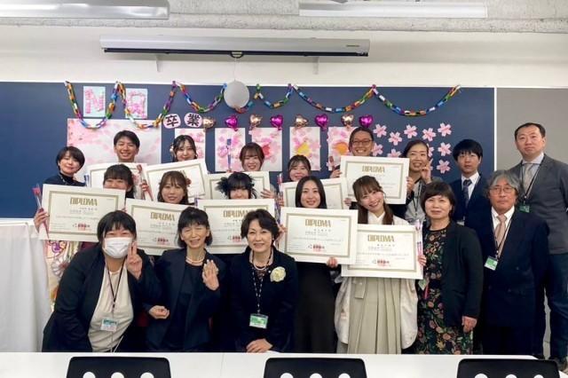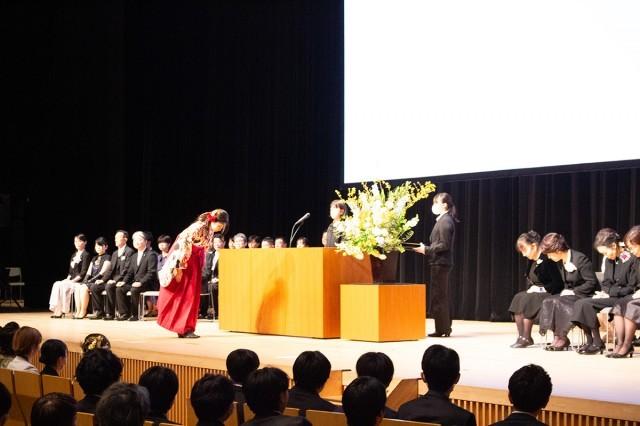 卒業式では小澤 敬也校長から卒業証書が授与されました。 また表彰式では、本学独自の『夢を夢で終わらせない支援金』の対象者へ認定証を授与。この制度は、本学を卒業後にかなえたい夢に関するプレゼンテーションを通じて、ユニークであると認められた卒業生に対して、卒業時に100万円を支給するものです。 今年度は、「空で味わう嚥下食(機内食) 食べる楽しみを全ての人に」というテーマでプレゼンをした言語聴覚学科の新井 唯さんが見事選出されました。新井さんには、支援金100万円が授与されます。 首都医校の経験豊かな教官たちから、高度な専門知識・技術を身につけた学生たち。医療現場で求められる、即戦力のある人材として羽ばたいていきます。
