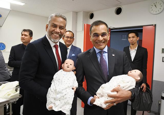 首都医校に、マレーシア人材開発大臣を中心とした視察団が来校しました。 マレーシアでは今後高齢化社会になることが見込まれており、先進的な日本の高齢者福祉を学ぶ上で、多種多様な留学生を受け入れ、社会に輩出している本学に注目され、視察にいたりました。介護福祉学科をはじめ、看護・リハビリ・スポーツと医療の総合校であることも、訪問先に選ばれました理由です。 当日総合校舎コクーンタワーを見学いただき医療現場を再現した実習室や器具にも興味を持っていただきました。また友好交流協定の締結をし、調印式も行いました。今後は、人材交流・相互協力ができる関係性を構築していきます。