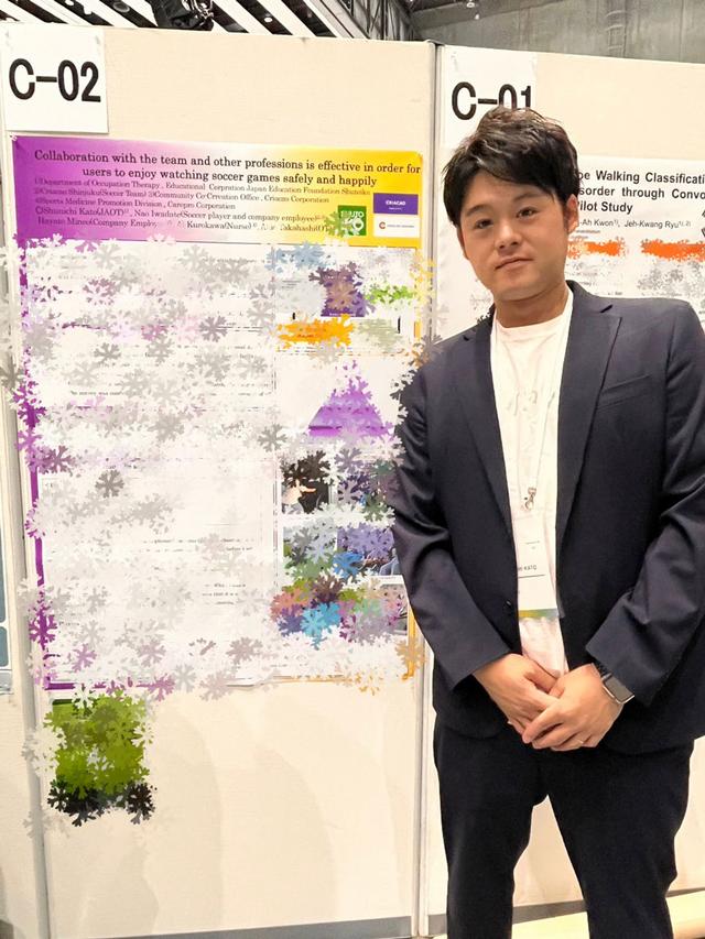 加藤教官は2024年11月6日~9日に北海道で開催された第8回アジア太平洋作業療法学会(8th APOTC 2024)でも、クリアソン新宿との取り組みにおける「利用者が安全に楽しくサッカー観戦を楽しむためのチームや多職種連携の有効性」について発表を行いました。 今後も作業療法士としてスポーツへの関わり、心身の両側面からのアプローチなどリハビリテーション領域の広がりを、学生とともに実践および好事例の共有していくことで、サッカーを通じた共生社会づくりを進めていきます。