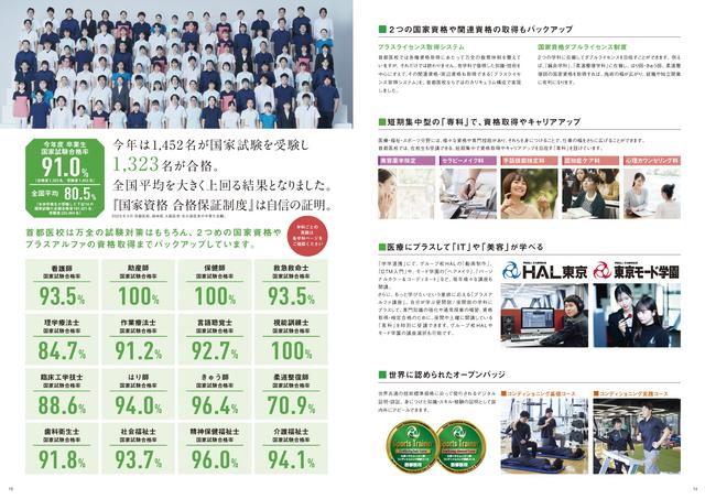 今年度の表紙には、看護師・理学療法士・作業療法士・臨床工学技士・救急救命士・歯科衛生士・アスレティックトレーナー・柔道整復師・鍼灸師・介護福祉士など自分の目指す医療人に向かって学ぶ医療の総合校ならではの実際の学生たちを起用しました。 学生が100人いれば、100通りの人生があります。 医療を志すきっかけも、理由も、時期も、みんな違う。 だけど、どんな人であっても、 100の約束で徹底的にサポートし、ぜったいに医療人にする。 そんな学校としての想いをこめた案内書となっています。学校紹介、学びの内容、卒業生の声など、最新情報を豊富に掲載しています。
